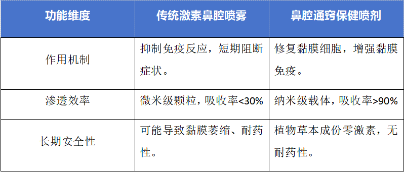 傳統鼻腔噴霧的分子粒徑多在微米級,難以穿透致密的鼻黏膜屏障,導致吸收率不足30%,大量藥物殘留在鼻腔前端或被吞咽代謝。更嚴重的是,長期使用激素可能引發(fā)鼻出血、黏膜萎縮等副作用。